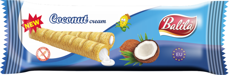 RURKI KUKURYDZIANE NADZIEWANE KREMEM O SMAKU KOKOSOWYM BEZGLUTENOWE 18 g - BALILA