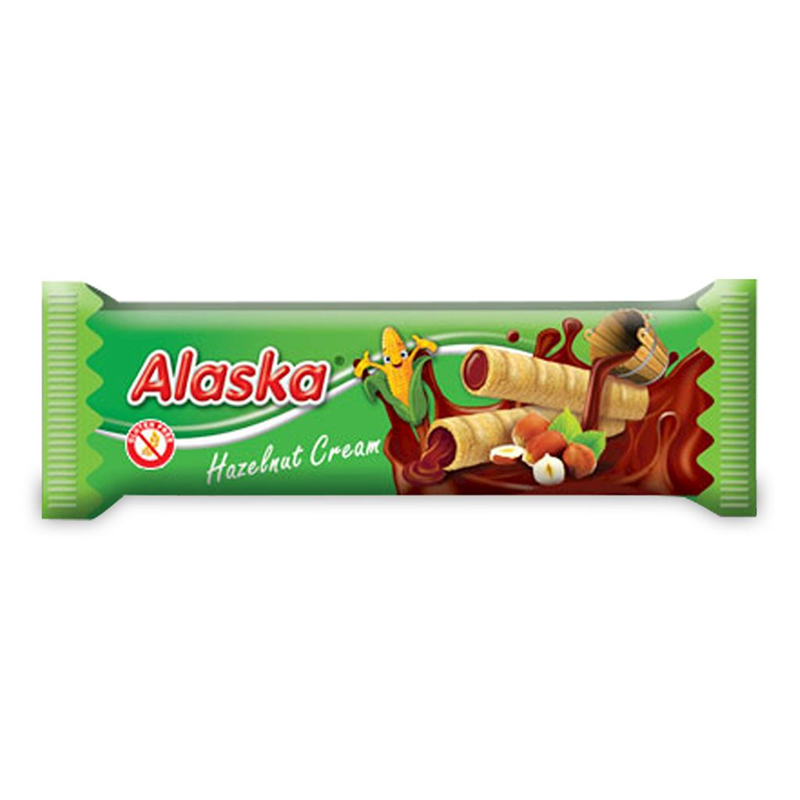 RURKI KUKURYDZIANE NADZIEWANE KREMEM O SMAKU ORZECHÓW LASKOWYCH BEZGLUTENOWE 18 g - ALASKA