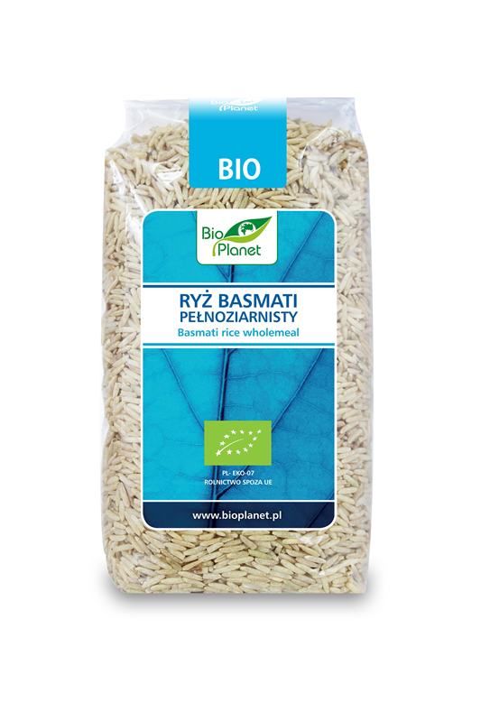 Ekologiczny ryż Basmati pełnoziarnisty charakteryzuje się subtelnym orzechowym smakiem i niepowtarzalnym aromatem. Stanowi najszlachetniejszą odmianę ryżu na świecie. Doskonały jako dodatek do mięs, sałatek, dań egzotycznych i deserów. Ryż Basmati pełnoziarnisty zachowuje wszystkie cenne składniki znajdujące się w łusce, dzięki czemu jest bardziej wartościowy niż ziarno obłuszczone.