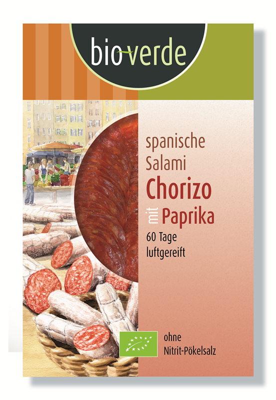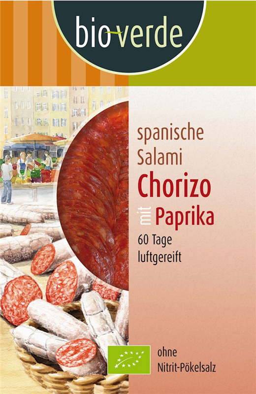 SALAMI CHORIZO Z PAPRYKĄ PLASTRY BIO 80 g - BIO VERDE