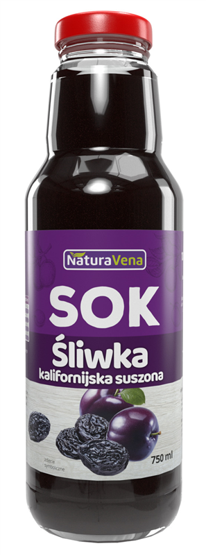 Sok z Suszonych Śliwek Kalifornijskich marki NaturaVena to sok produkowany z suszonych śliwek kalifornijskich. Posiada wyraźny smak i zapach oraz słodycz.