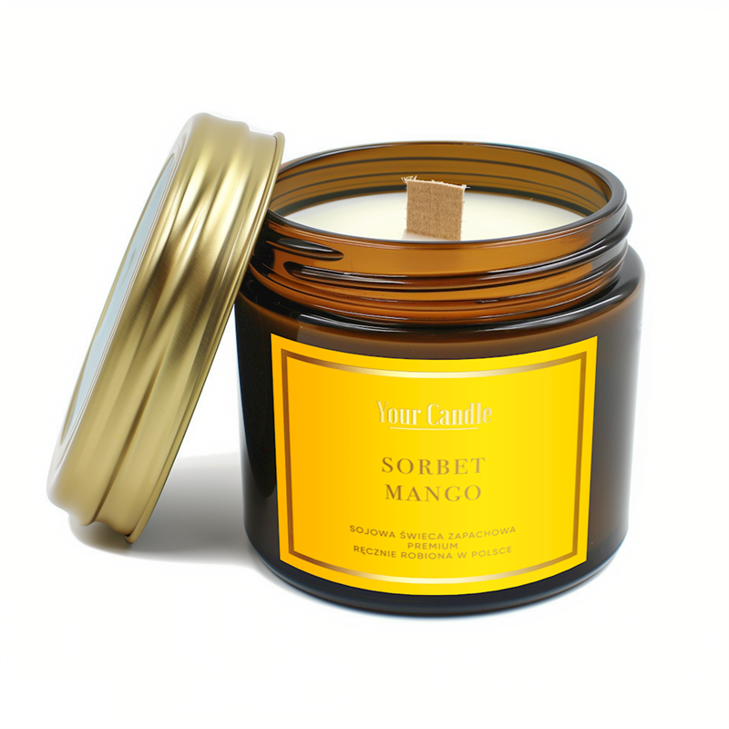 ŚWIECA SOJOWA ZAPACHOWA Z DREWNIANYM KNOTEM SORBET MANGO 120 ml - YOUR CANDLE