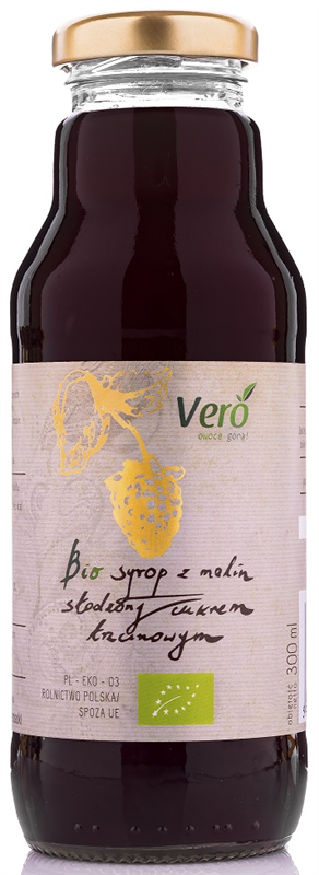 SYROP MALINOWY SŁODZONY CUKREM TRZCINOWYM BIO 300 ml - VERO