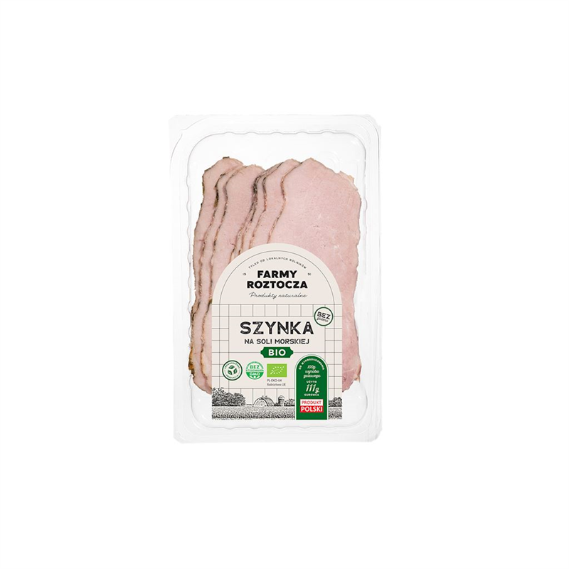 SZYNKA NA SOLI MORSKIEJ W PLASTRACH BIO 100 g - FARMY ROZTOCZA (NA ZAMÓWIENIE)