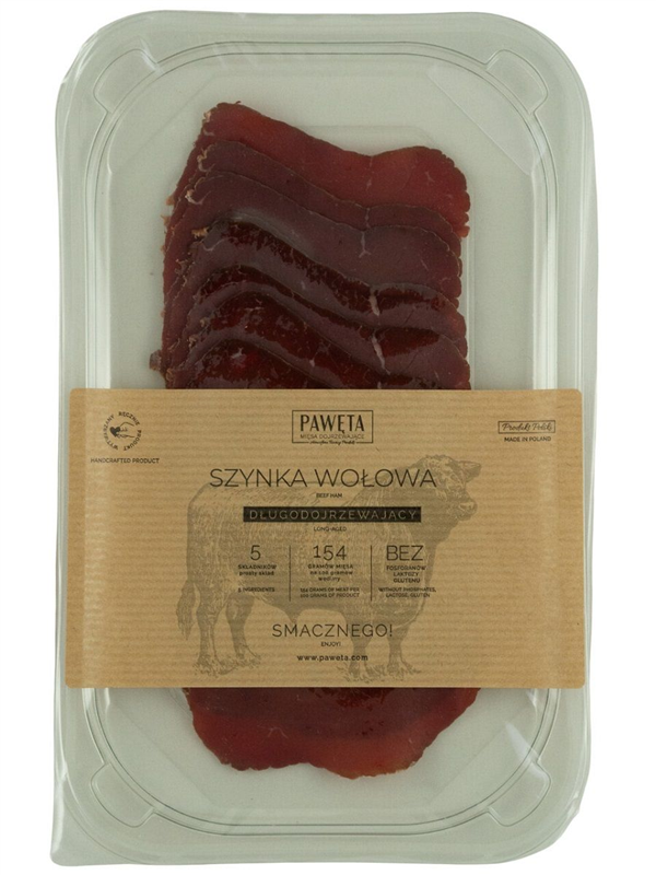 SZYNKA WOŁOWA DOJRZEWAJĄCA PLASTRY BEZGLUTENOWA 65 g - PAWĘTA