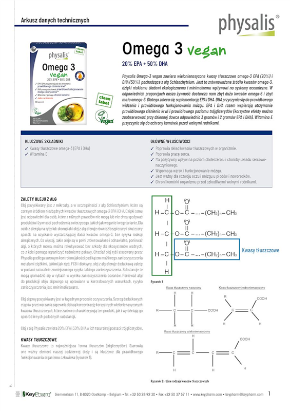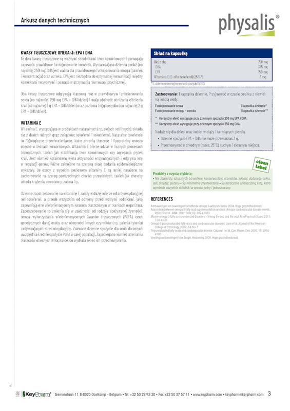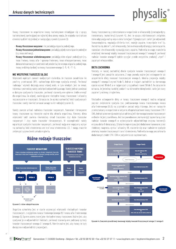 Physalis Cholesterol control to preparat złożony zawierający AnnurComplex®, unikalny i dobrze przebadany ekstrakt włoskiego pochodzenia zawierający polifenole ze specjalnej odmiany jabłka Annurca (Malus pumila var. annurca). ABG25+® (Aged Black Garlic) to najwyższej jakości i klinicznie przebadany ekstrakt z czosnku, który zawiera substancję czynną S-allilo-cysteinę (SAC), pochodzącą z innowacyjnego procesu fermentacji. Fermentowany czosnek przyczynia się do prawidłowego poziomu cholesterolu i zdrowego serca. Cholina (VitaCholineTM) wspomaga prawidłowy metabolizm tłuszczów. Wreszcie Physalis Cholesterol control zawiera również ekstrakt z liści oliwnych (20% oleuropeiny), który pomaga utrzymać prawidłowe ciśnienie krwi, a także wysokiej jakości ekstrakt z owoców oliwki (Mediteanox® z hydroksytyrozolem) i bioaktywny ekstrakt wodny z karczocha (Altilix®).