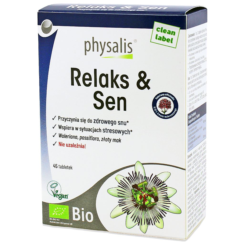 całkowicie. Physalis Relaks & Sen bio zawiera walerianę, passiflorę i złoty mak. Rośliny te są tradycyjnie znane ze swojego wkładu w naturalny