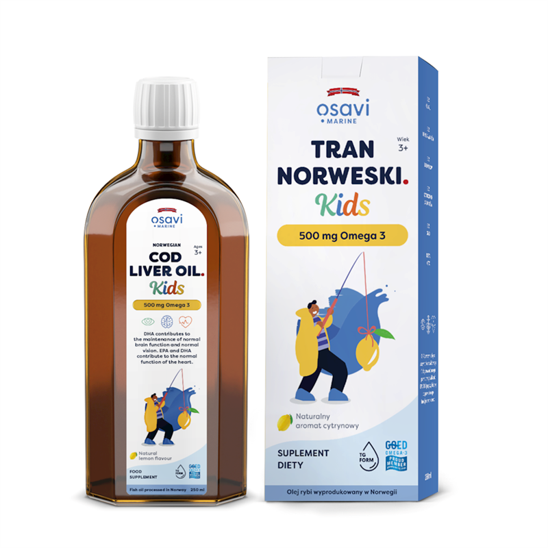 TRAN NORWESKI OMEGA-3 (500 mg) DLA DZIECI OD 3 ROKU O SMAKU CYTRYNOWYM 250 ml - OSAVI