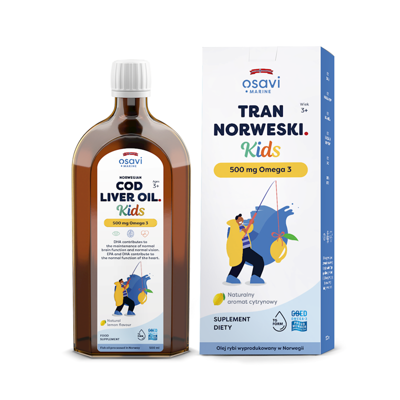 TRAN NORWESKI OMEGA-3 (500 mg) DLA DZIECI OD 3 ROKU O SMAKU CYTRYNOWYM 500 ml - OSAVI