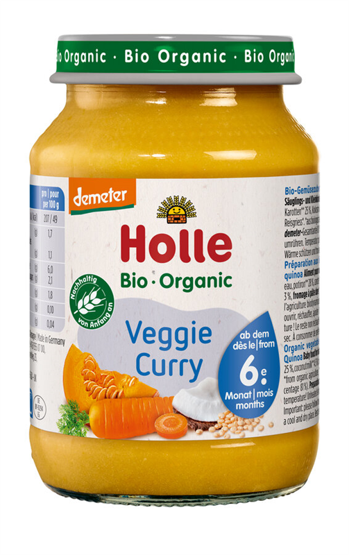 WARZYWNE CURRY BEZ DODATKU CUKRÓW BEZGLUTENOWE OD 6 MIESIĄCA DEMETER BIO 190 g (SŁOIK) - HOLLE