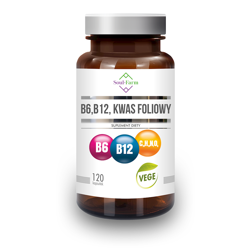 WITAMINA B6 + B12 + KWAS FOLIOWY 120 KAPSUŁEK (18 mg + 600 mcg + 100 mcg) - SOUL FARM
